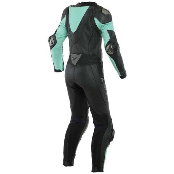 Gear up and stand out on the road with our Dainese Ladies Imatra Perforated One Piece Leather Suit – Black/Aqua Green. Swagger Outfits has fabricated this suit from premium full-grain cowhide leather for enhanced breathability and long-lasting wear. Moreover, this gear arrives with an aerodynamic spoiler for maximum stability and balance at speed. In addition, our assembling techniques have integrated S1 bi-elastic fabric into this outfit for elevated mobility and easy movement.