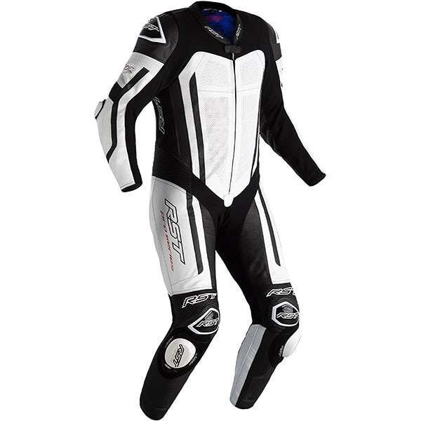 The RST Pro Series Evo Airbag CE One Piece Leather Suit – White/Black is for sale in multiple color schemes on this page. Importantly, this suit turns up with double leather in high-impact zones to eliminate any risk of serious injury. Furthermore, it also exhibits an aerodynamic race hump and perforated panels for optimal airflow and temperature regulation. For ultimate safeguard and control, we have also formulated rubberized Dupontâ„¢ Kevlar® knee grippers in this product.
