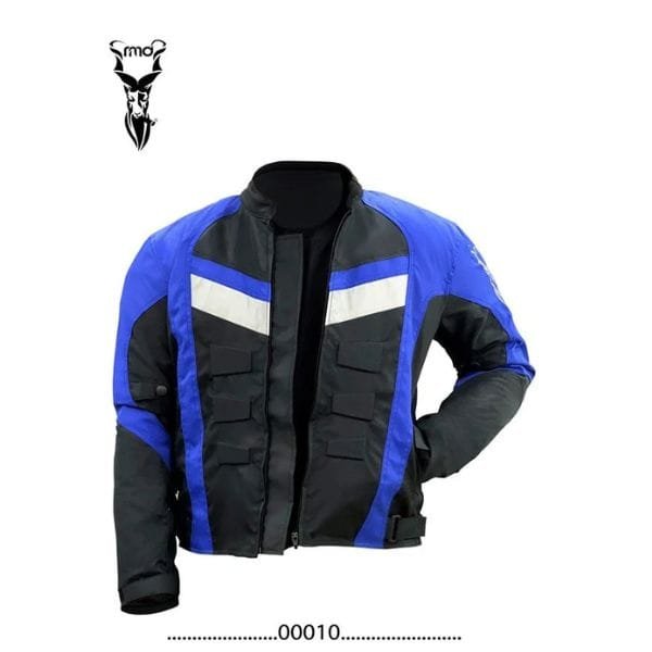 This is a cutting-edge apparel designed for riders who crave both style and safety. This jacket showcases a striking combination of blue and black stripes, adding a touch of sophistication to its overall design. Meticulously crafted with top-notch materials, the “Striker” ensures optimal comfort and protection during your rides. With its sleek and modern look, this jacket is bound to turn heads wherever you go. Elevate your riding experience with the “Striker” motorcycle jacket.